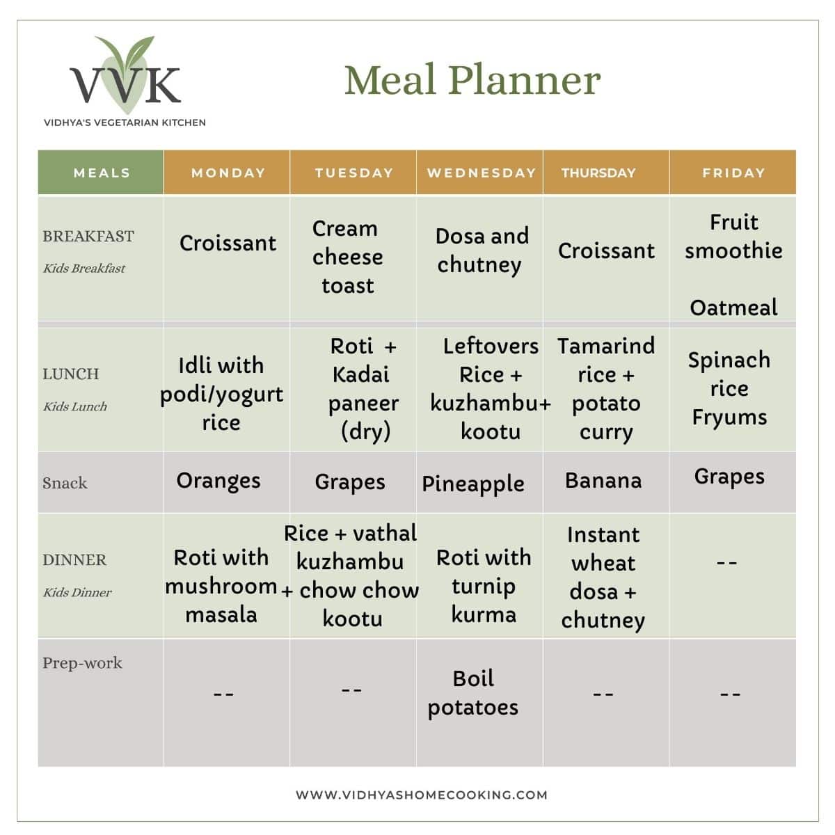 Like every week, I have a mix of south Indian and north Indian recipes, and I have more roti and curry than any other week. Also, I am relying on some leftovers and store-bought croissants for breakfast.