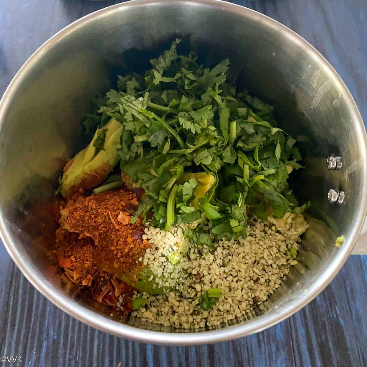 The dressing is so creamy, but I haven’t used any mayo or sour cream. All the goodness comes from avocado and hemp hearts. The taco seasoning, cilantro, and lemon juice add tons of flavor too. This avocado dressing is versatile, and you can use this as a sandwich spread or a dip. Please do give this a try and I am sure you will be making this again and again.