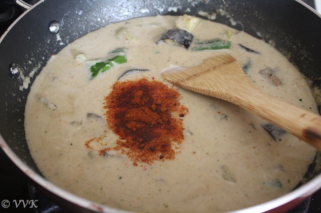 - Paprika powder is for the color. If you feel it’s too spicy, go with the food color, or you can skip that too. The color depends upon the thickness of coconut milk too.