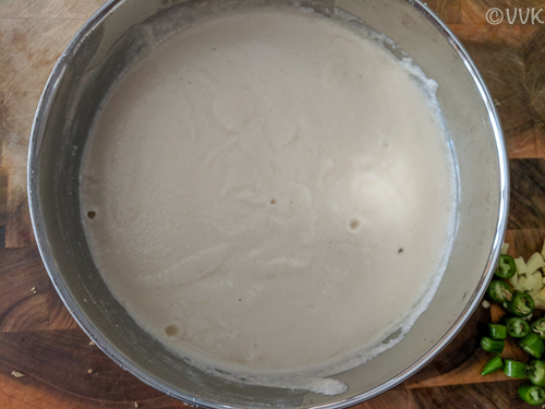 - Add the salt and allow this batter to ferment for a minimum of 2 hours. We usually grind it the day before and let it ferment overnight. (see notes if you can’t ferment the batter)