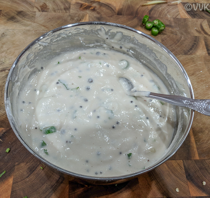 - When the mustard seeds start to splutter, then add this tempering to the batter.