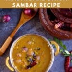 Ok, this is not my first arachuvitta sambar recipe on my blog. I have shared my mom’s arachuvitta sambar that has a strong coriander seeds flavor and her unique tiffin sambar. Also, I have other arachuvitta sambar recipes like Thiruvadirai sambar, pitlai, rasavangi, etc. I didn’t realize that my MIL’s version was missing, especially her onion sambar. Here I am amending that. :-)