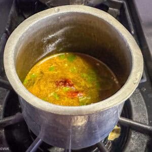 - If you don’t have tamarind paste, soak a gooseberry-sized piece of tamarind in 1 cup of water, extract the juice, and use it in the rasam.