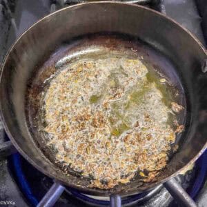 - In a small pan, heat the ghee. Add toor dal, cumin seeds, mustard seeds, and the remaining dried neem flowers. Sauté until the neem flowers turn slightly brown.
