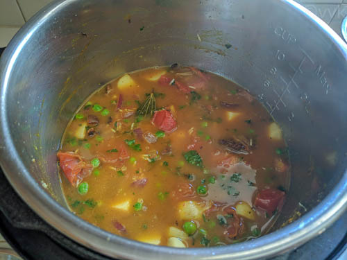 - Now add the potato cubes, peas, and cilantro. Gently mix.