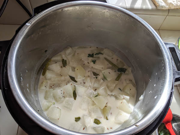 My mom makes similar recipe with bottle gourd and regular milk. I love this coconut milk version since my husband is allergic to dairy. Using the instant pot is such a great idea too.