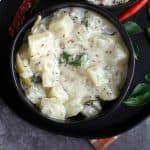 The recipe is straightforward. First, you prepare the tempering, then cook the vegetable and then add the coconut milk mixed rice flour and simmer until it thickens. That’s it.