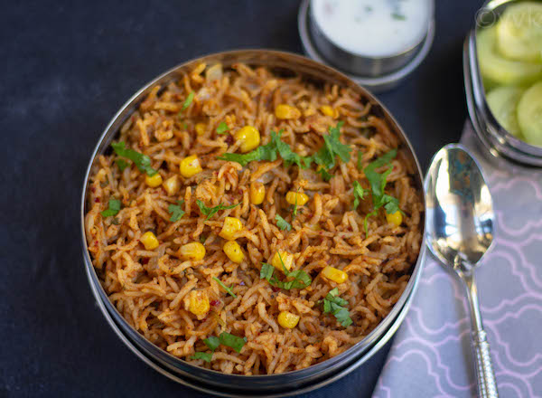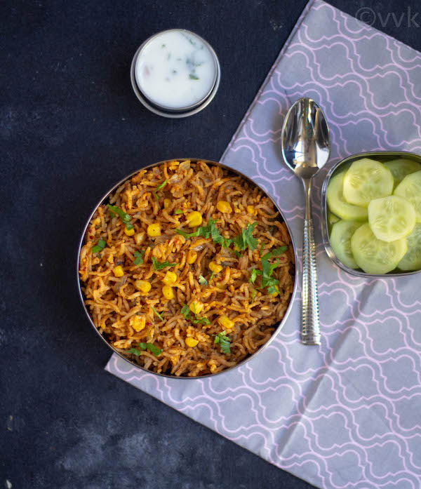 Xacuti Masala Pulav – A simple corn pulav bursting with the flavors of Goan xacuti masala made in Instant Pot. A perfect pulav for any occasion. Check out the full recipe of this Goan xacuti masala pulav with detailed pictures.