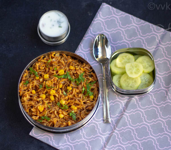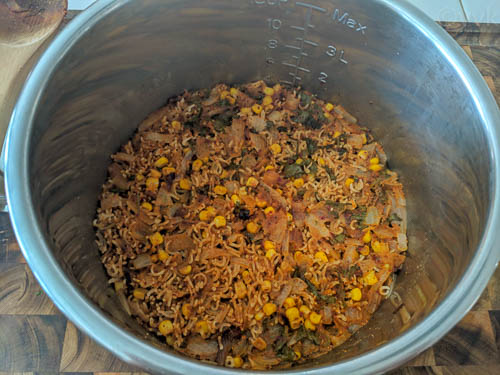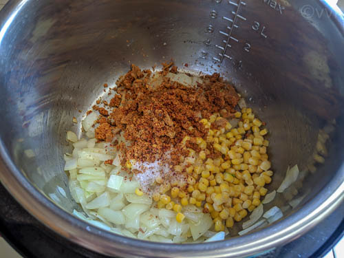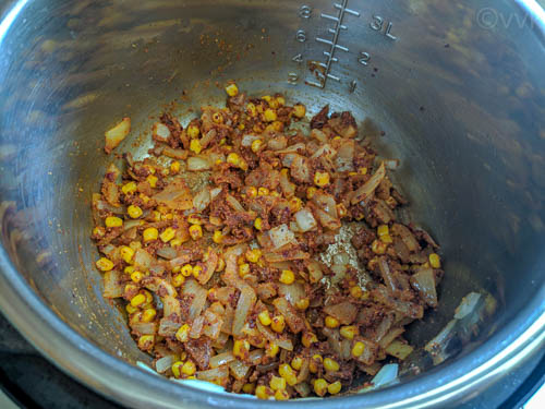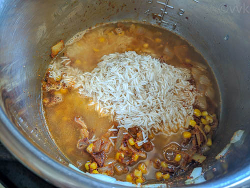 - I added corn alone, but you can include other veggies as well but not more than 1 cup. If you are using 1 cup of vegetables, then add 1 ⅓ cup of water.
