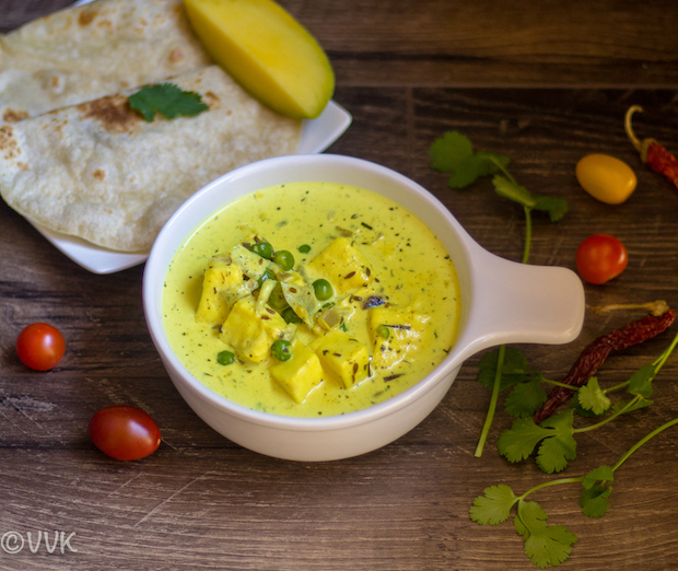 I haven’t seen yellow chilly here, but we got it during our trip to Delhi. Vaishali introduced it to me. This curry looks awesome Vidya. Kids would love this mild curry with paneer for sure..