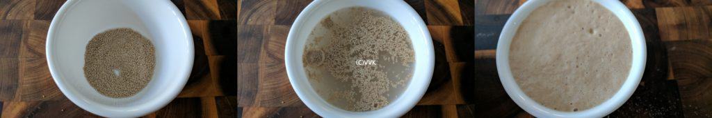 - In a bowl add the lukewarm water, sugar and yeast and mix