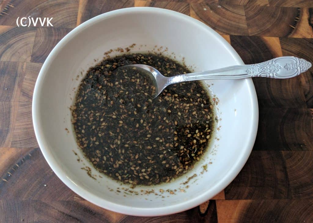 - Mix the za’atar spice with ¼ cup of olive oil and set aside.