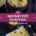 Zarda pulao or meetha chawal is a simple saffron-flavored sweet rice made with sugar and nuts. Make this sweet pulav any time in your Instant Pot and enjoy any occasion.